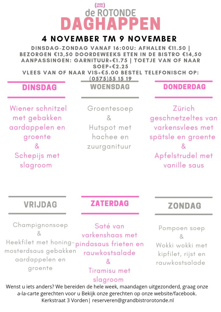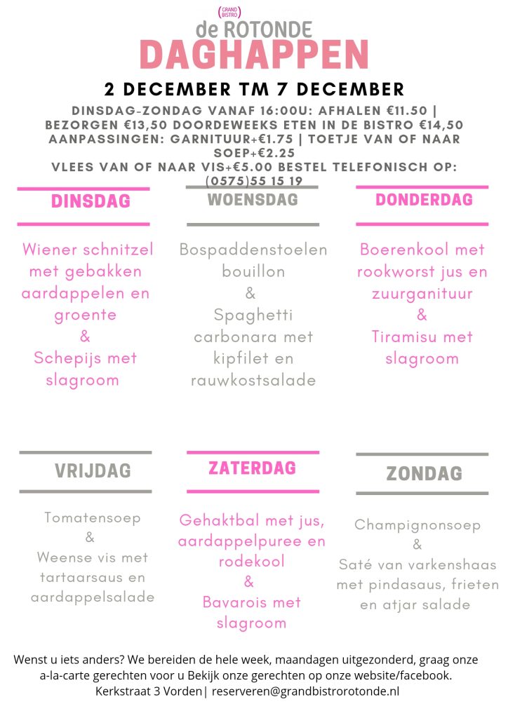 De reserveringen voor Kerst lopen hard! De 2e & 3e zitting op 1e Kerst zitten vol! Wel is er nog plek voor de 1e zitting! Onder het kopje ´Kerst 2025´ een overzicht over hoe wij geopend zijn in de Kerstvakantie. Informatie betreft het Kerstmenu & Catering volgen nog.